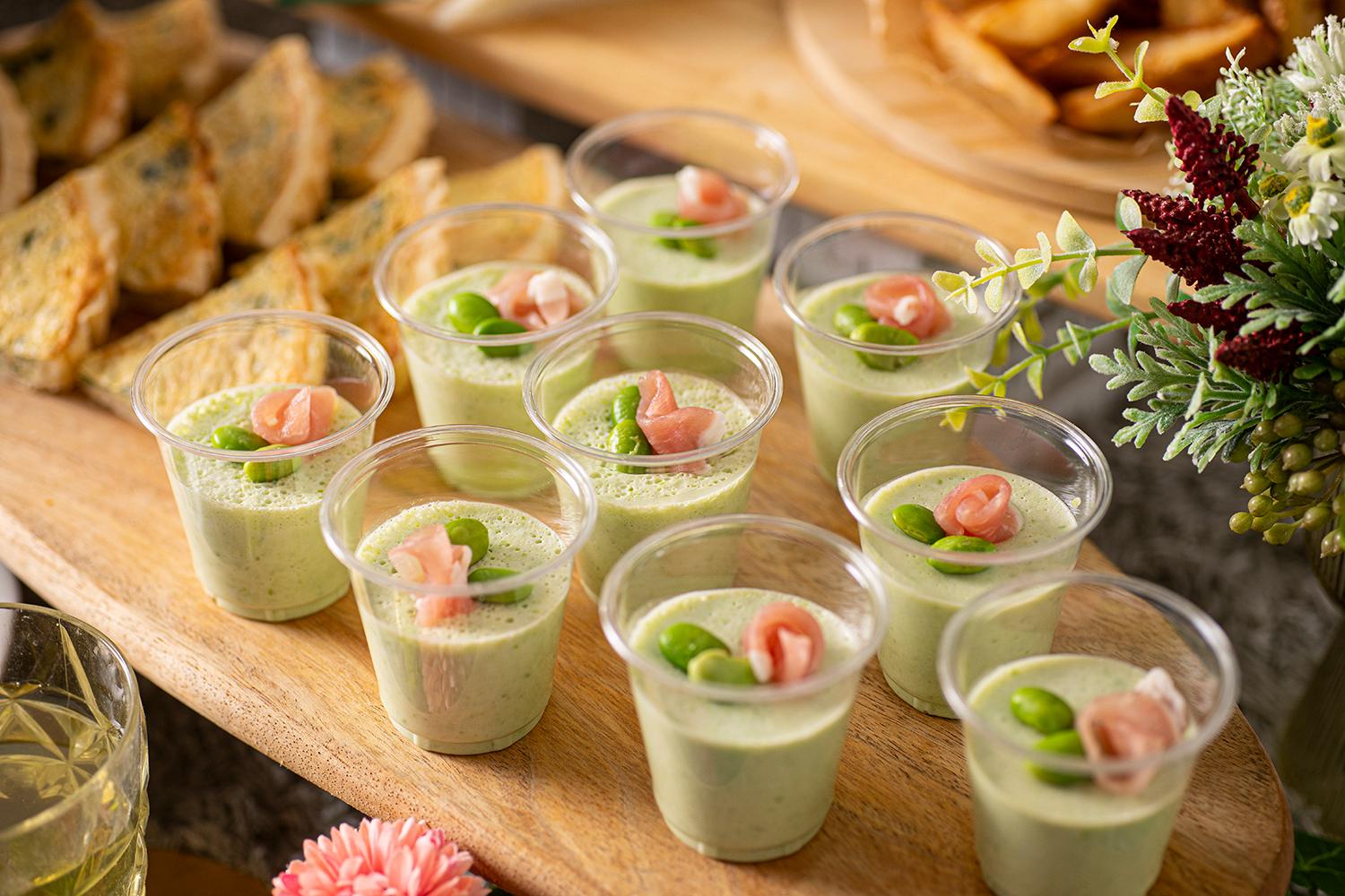 主菜副菜をご自分でカスタマイズが可能なプランです。 次ページのオプションで選択をお願いします。 ・アミューズ2品 (季節のブルスケッタ・鴨のローストピンチョス・ごろっと野菜のラタトゥイユ・季節のヴェリーヌ・スモークサーモンの生春巻き) ・メイン料理2品 (特製えびマヨネーズ・デミグラスハンバーグ・ホワイトソースロールキャベツ・チキンのレモンペッパーステーキ) ・揚げ物2品 (スティックフライドチキン&ポテトフライ・チーズリゾットコロッケ・カニクリームコロッケ) ・主食料理2品 (手毬寿司・ミラノ風ピザ・サンドイッチ) ・季節のデザート オプションの選択がなき場合は以下のプランで実施させていただきます。 〇アミューズ ・鴨のローストピンチョス ・季節のヴェリーヌ 〇メイン ・チキンのレモンペッパー ・ホワイトソースロールキャベツ 〇揚げ物 ・チーズリゾットコロッケ ・スティックチキン&フライドポテト 〇主食 ・手毬寿司 ・サンドイッチ になります。 |