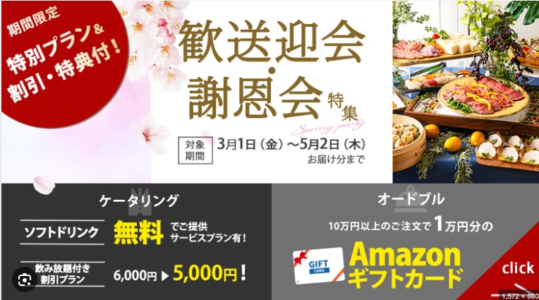 なかなか予約が取れない有名店などのお料理を、春のイベントに最適なプランと期間限定特典付きでご用意いたしました!